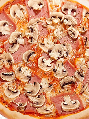 Laissez la sauce refroidir et appliquez-la à la base de votre pizza. Commencez à préparer des champignons frais pour une pizza italienne avec champignons, jambon de porc, mozzarella et tomates. Pelez-les en quantité de 300 g, coupez-les en lamelles et faites-les frire. Mettez-les sur un fond avec la sauce, par-dessus 150 g de jambon et 200 g de mozzarella, coupés en dés. La cuisson à une température de 200 degrés prend environ 20 minutes.