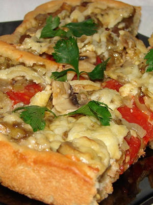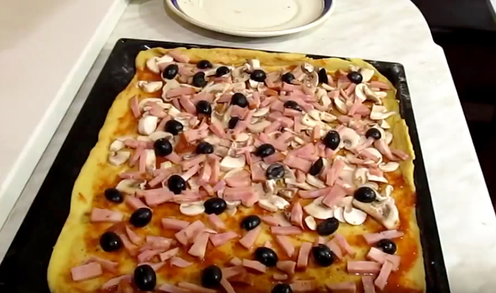 La pâte pour une telle pizza peut être préparée selon la recette de base mince décrite précédemment.