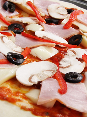 Recette de pizza à base de champignons, de fromage et de jambon