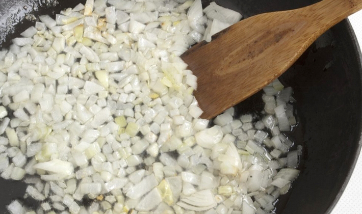 Les oignons finement hachés doivent être frits pendant 7 minutes. dans 1 cuillère à soupe. cuillère d'huile, sel.