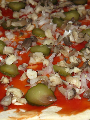 Comment faire cuire une pizza avec des champignons, du fromage et des cornichons
