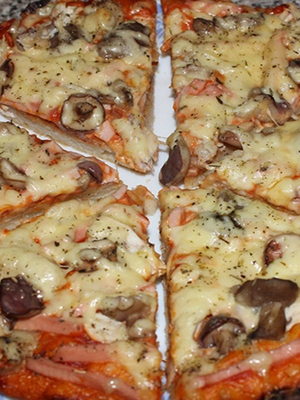 Une bonne option serait une pizza copieuse avec des champignons marinés et des saucisses ou des saucisses. Pour le préparer, vous devez utiliser les composants suivants: