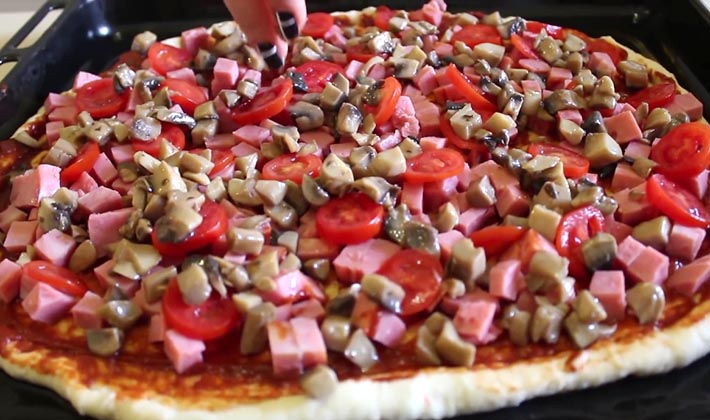 - Comment faire une pizza avec des champignons, des saucisses, du saucisson ou du jambon