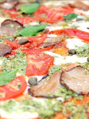 Pizza aux champignons avec fromage, tomates et courgettes.