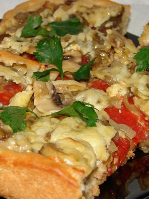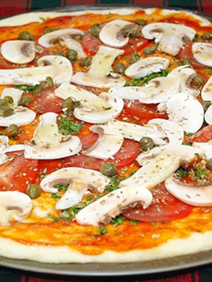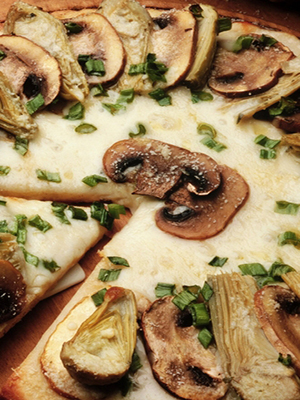 Une autre option pour une combinaison d'ingrédients de légumes créera une excellente garniture pour une pizza fine aux champignons marinés: