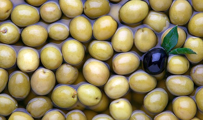 La couche suivante est 10-15 pcs.haché dans les demi-olives et les olives avec 10 g de verdures hachées finement.