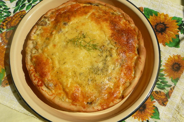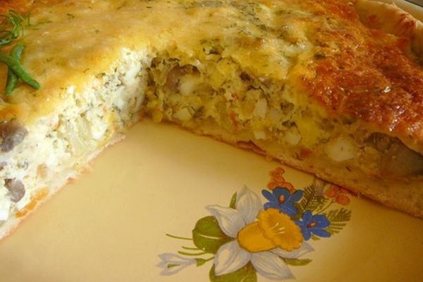Il se trouve que vous pouvez faire une tarte avec des champignons à partir de pâte à levure toute prête, qui est vendue à volonté dans le magasin.