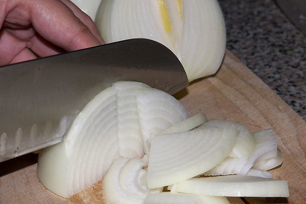 Remplissage: épluchez l'oignon et coupez-le en fines rondelles.