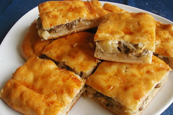 Et comment faire une tarte avec du chou, des champignons, de la viande et des pommes de terre sans levure? Je dois dire que beaucoup de femmes au foyer aiment travailler avec un tel test: vous pétrir et cuire au four immédiatement.