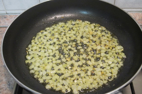 Coupez l'oignon en dés et faites-le frire dans l'huile jusqu'à ce qu'il soit doré.