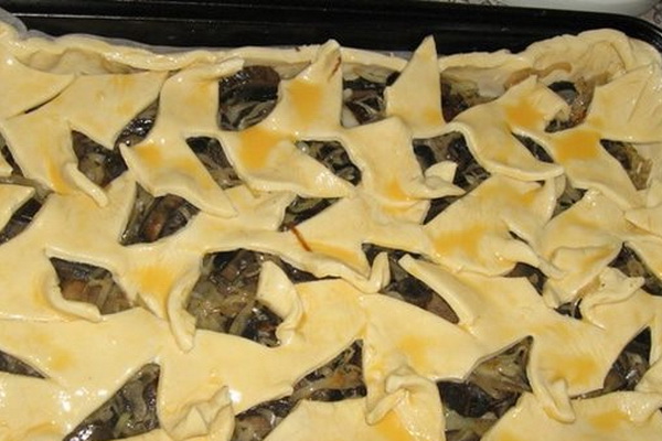 Cuire une couche de tarte avec du chou et des champignons ne prendra pas beaucoup de temps, surtout si vous achetez de la pâte dans un magasin.