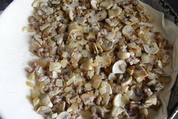 Découvrez la recette pas à pas pour la tourte à la viande aux champignons à l'aide de la photo ci-dessous. Préparez la pâte à tarte selon votre recette préférée.