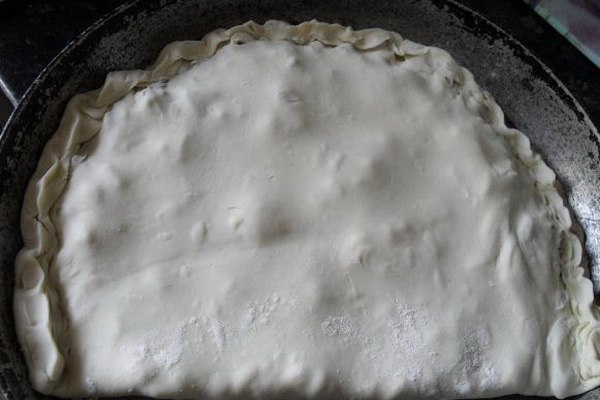 Couvrir avec la deuxième partie de la pâte roulée d'en haut, relier les bords.