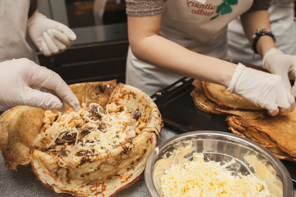 Vous devez d’abord cuire des crêpes: battre les œufs avec du lait, ajouter le sel et la farine, mélanger et verser de l’huile.