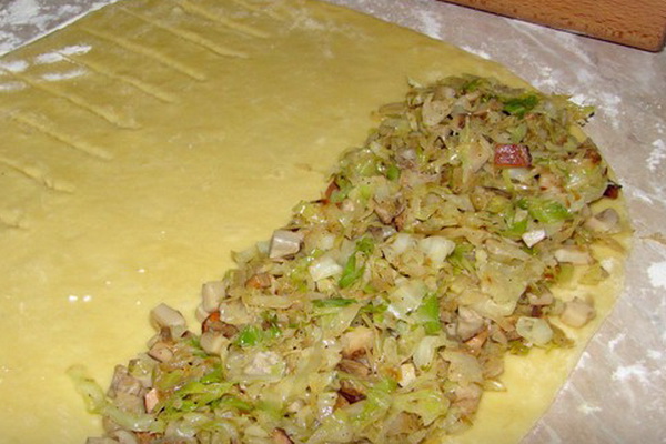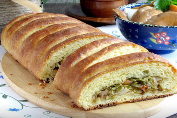 Une tarte au chou et aux champignons salés dans une pâte à la levure aura fière allure même lors d’un événement festif.