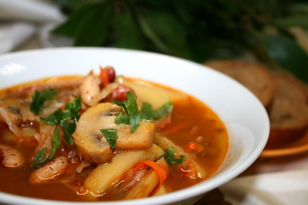 Comment faire cuire rapidement une soupe maigre avec des champignons et des haricots