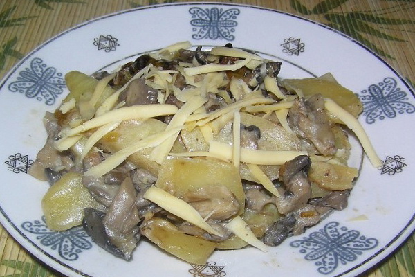 - Plat de champignons d'huîtres avec pommes de terre et fromage