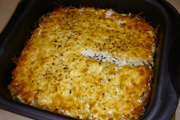Cuire la cocotte au four à 200 ° C, saupoudrer de fromage râpé avant de servir.