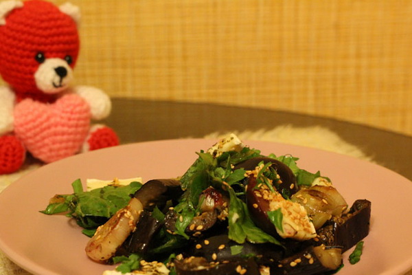 Couper les aubergines en rondelles, arroser d'huile d'olive et laisser mijoter à 200 ° C pendant environ 10 minutes. Lavez, séchez et épluchez les champignons, coupez-les en tranches, faites les cuire avec des rondelles de poireau dans l'huile d'olive pendant 5 minutes. Préparez la salsa: enlevez les tiges et les graines des tomates et du chili, coupez-les en dés, combinez, ajoutez du persil haché, de l'huile d'olive, du sel et du poivre noir fraîchement moulu, mélangez.
