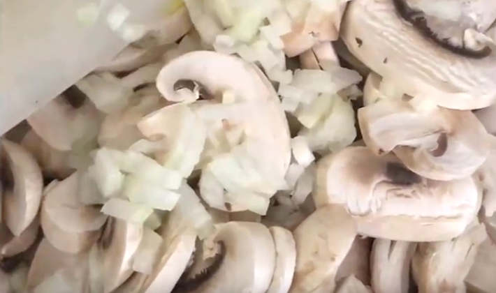 Hachez l'oignon et ajoutez-le aux champignons en remuant délicatement.