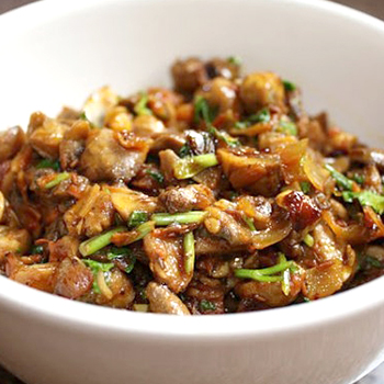 - Mettez les ailes dans un plat sec séparé, faites frire pendant 10 minutes. verser l'huile végétale et faire revenir les champignons pendant 15 minutes.