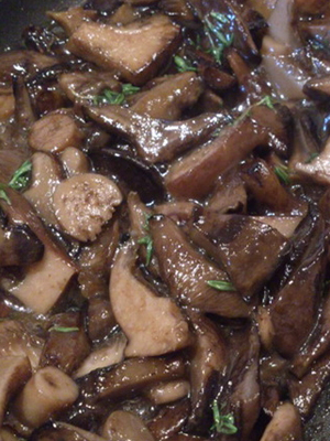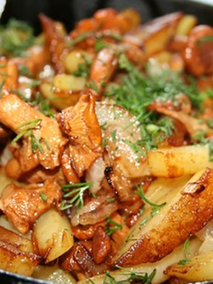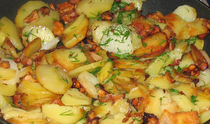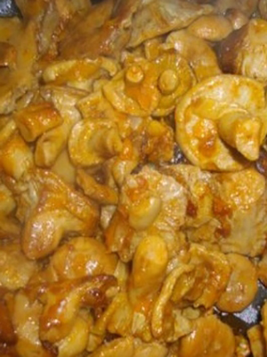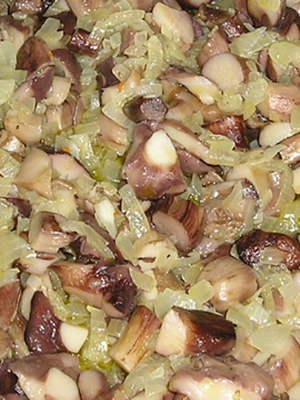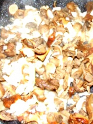 Les champignons pré-bouillis sont coupés en morceaux et frits dans du beurre jusqu'à coloration dorée.