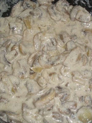 - Verser la sauce à la crème sure dans les champignons et les oignons, bien mélanger et laisser mijoter pendant 10 minutes. à feu doux.