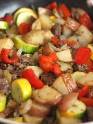 - Salez tout au goût, poivrez, mélangez et faites frire à feu doux pendant 10 minutes, en remuant avec une spatule en bois pour éviter les brûlures. Le plat est généralement servi avec de la viande ou du poisson.
