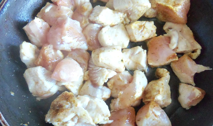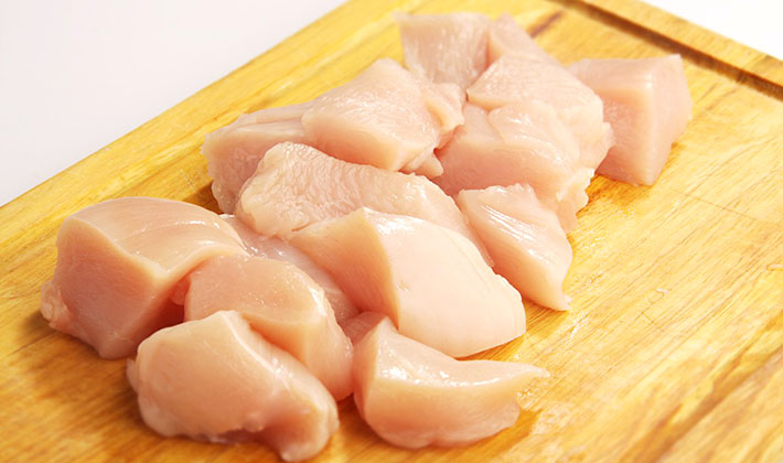 Lavez la viande de poulet et coupez-la en petits morceaux.