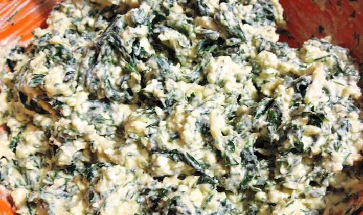 Lorsque le mélange est prêt, retirez-le du feu et ajoutez les verts, puis mélangez bien et laissez refroidir.