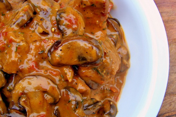 - Lorsque le ragoût avec des champignons sauvages dans la mijoteuse est prêt, vous pouvez le saupoudrer d'herbes fraîches ou de fromage râpé et le servir.