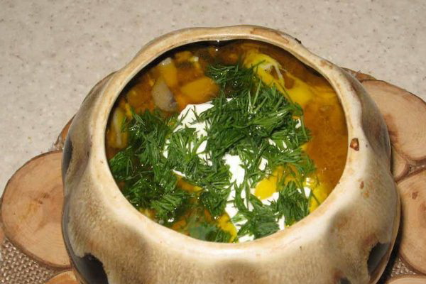 - Ajoutez le rôti à l'orge avec les légumes, ajoutez de l'eau bouillante, salez si nécessaire. Cuire 10 minutes. Ajouter le bouillon de champignons et cuire encore 5-10 minutes.