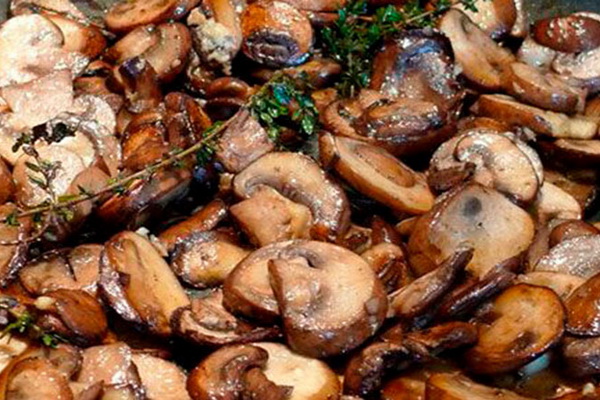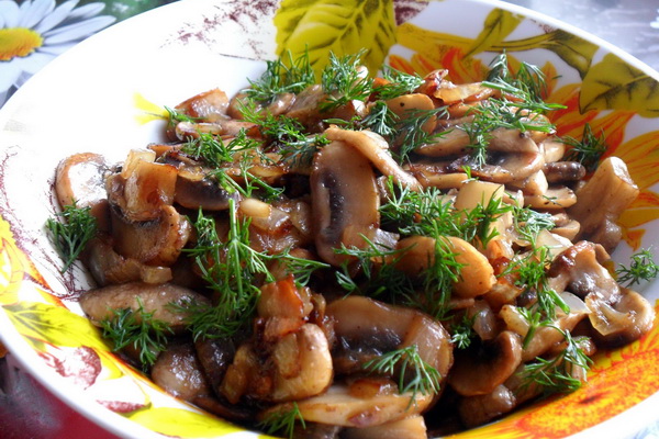 - Nous lavons nos champignons, coupons et, avec des oignons émincés, nous les envoyons dans une poêle avec de l'huile végétale pour les faire frire.