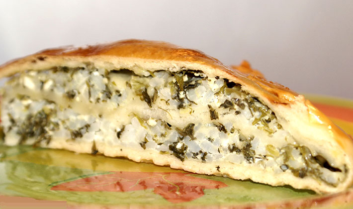 Pétrir la pâte, mettre sous une forme, répartir le remplissage et cuire au four pendant 25-30 minutes.