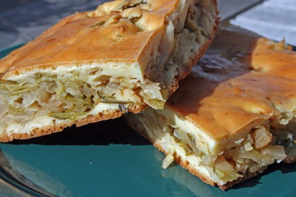 Tarte maigre au chou et aux champignons de la pâte à la levure