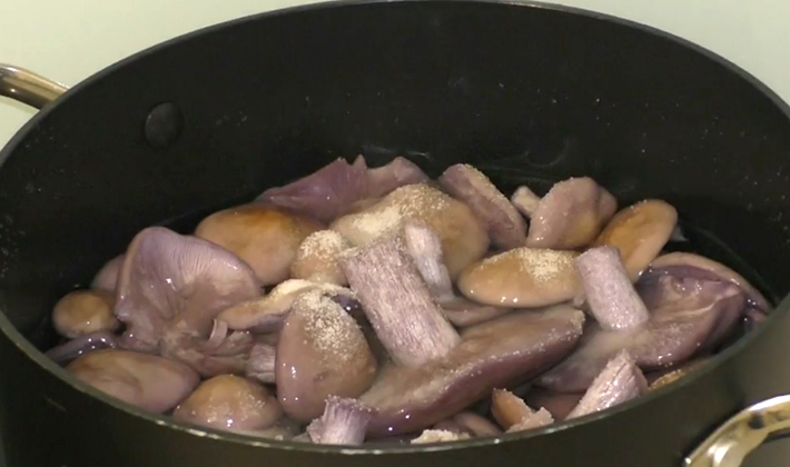 La ligne violette permet d’obtenir des blancs pour l’hiver. Essayez de faire une salade chaude de ces corps de fruits - vous ne le regretterez pas!