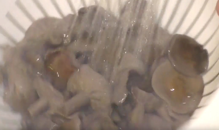 - Après le nettoyage préliminaire, les champignons sont bouillis dans de l'eau salée pendant 20 minutes.