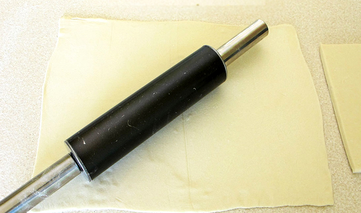 Nous déplaçons la pâte sur une plaque à pâtisserie et replions le bord.