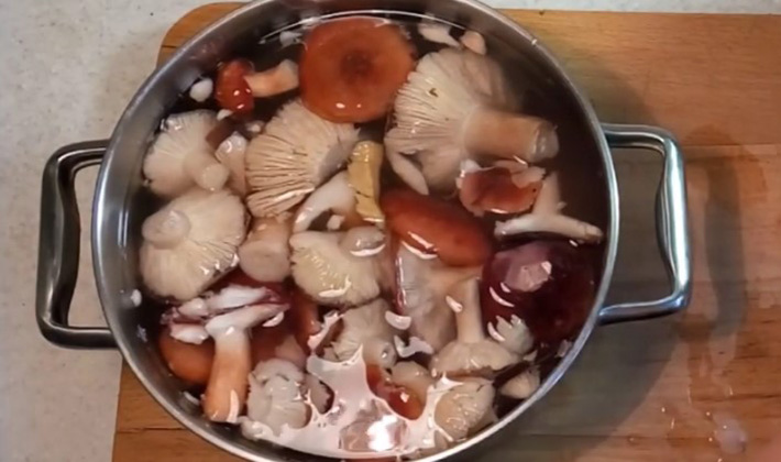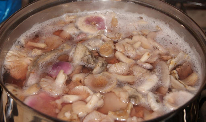 - Après le nettoyage et le lavage, les champignons sont bouillis pendant 10 minutes dans de l'eau salée.