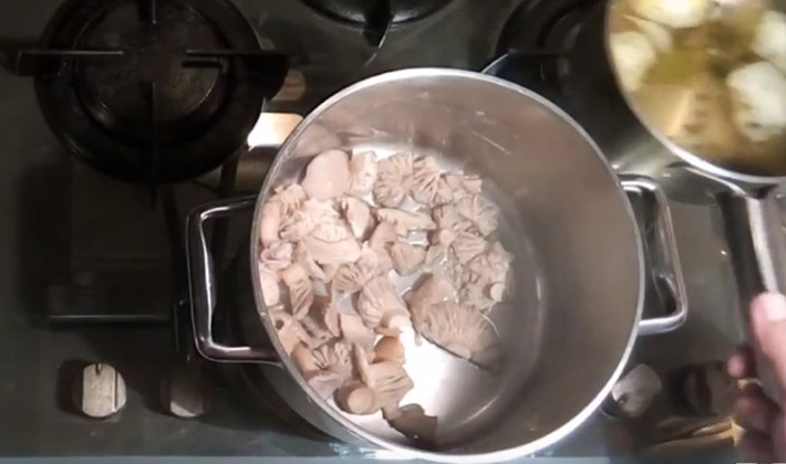 - Une fois que les champignons sont pelés, ils sont bouillis 15 minutes dans de l'eau salée.