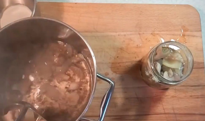 - Encore une fois, ils laissent bouillir et remplissent les bocaux de champignons.