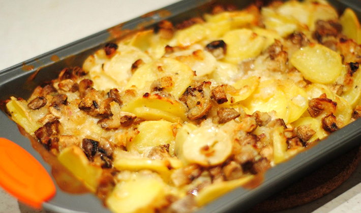 - Pommes de terre au four avec champignons et viande hachée