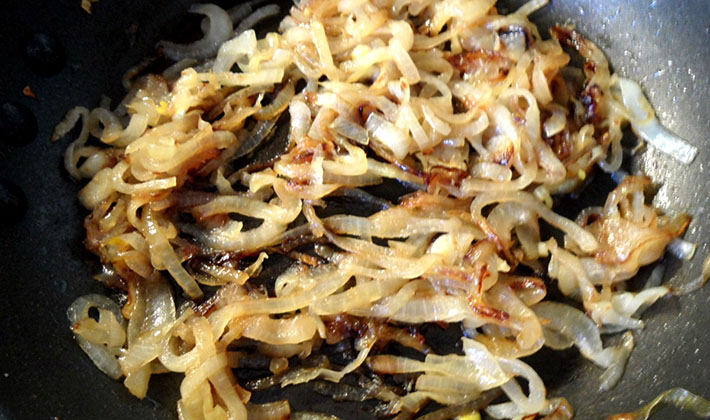 Hacher finement l'oignon, laisser mijoter dans une petite quantité d'eau, saler.