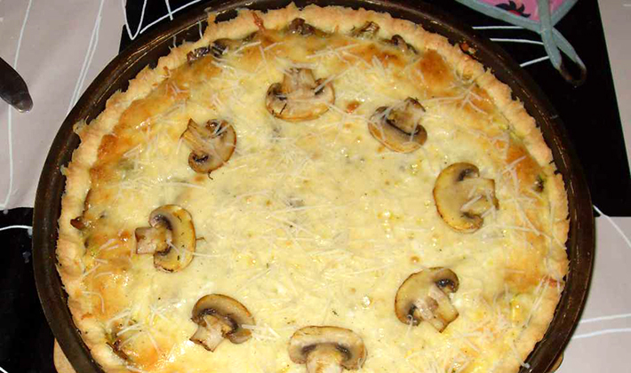 La recette pour une tarte fermée au poulet et aux champignons comprend la préparation suivante: