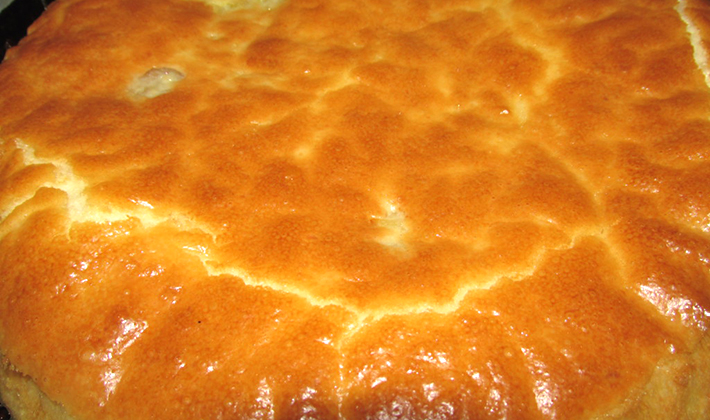 Abaisser la couche de la pâte gauche et la recouvrir. Donnez du temps au gâteau pour le distancer et le graisser avec un oeuf. Cuire le gâteau au four à une température de 200 à 210 ° C pendant 25 à 30 min.
