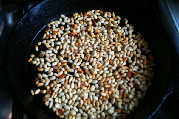 Faites cuire les pignons de pin dans une poêle sèche à feu moyen.