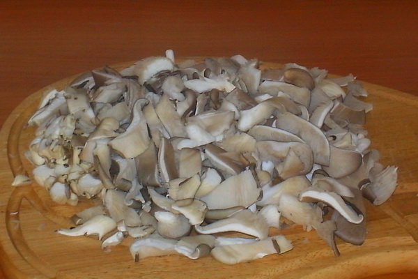 Les champignons d'huîtres coupés au hasard et ajouter à d'autres produits.