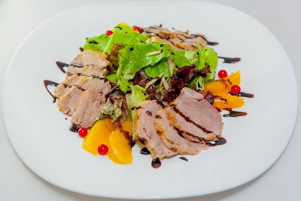 Une salade tiède de foie de poulet aux pleurotes vous ravira non seulement par sa sophistication. Les fruits et les abats de poulet frits rendent la salade très satisfaisante, elle contient des oligo-éléments importants pour l'homme: zinc, phosphore, fer, vitamines du groupe B et cobalt.