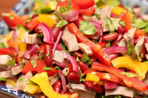 Ce plat peut remplacer un repas complet, car les haricots en combinaison avec des champignons renforcent la valeur nutritionnelle de la salade, ainsi que sa saturation.