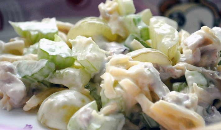 - Salade au poulet, aux champignons en conserve et aux noix